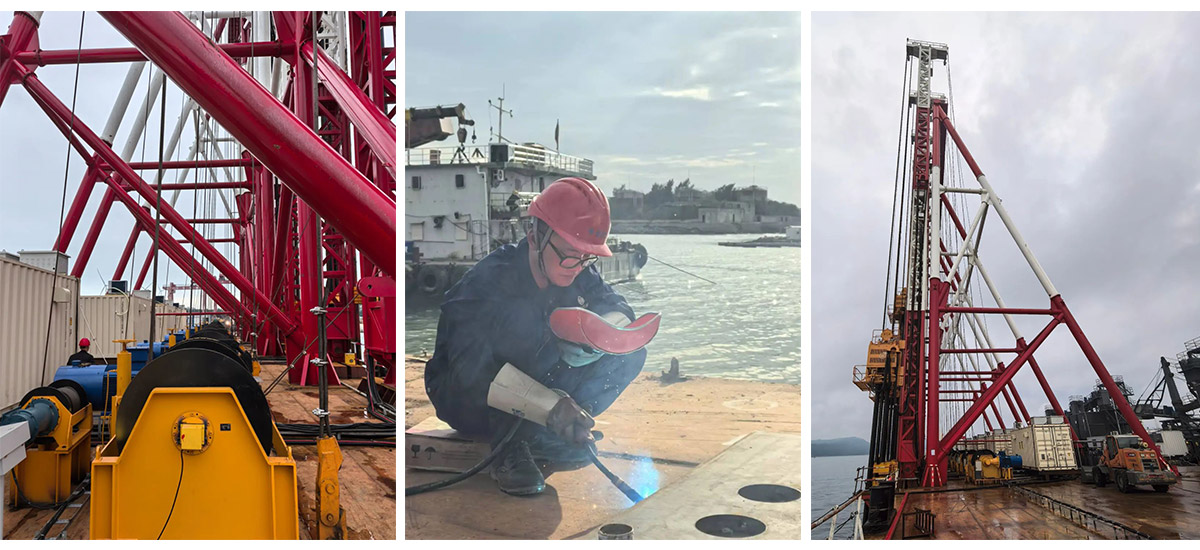 此次振中公司成功中標(biāo)參與智能打樁設(shè)備與系統(tǒng)建設(shè)也正源于其在樁工領(lǐng)域40年如一日的深耕和水泥攪拌樁領(lǐng)域的專業(yè)積累。在前期方案討論階段,公司高層高度重視,召集多名專家成立項目組,面對海工項目復(fù)雜地層施工難題,技術(shù)團隊提出研發(fā)扭矩動態(tài)補償和變頻控制技術(shù),以突破動力與結(jié)構(gòu)設(shè)計瓶頸;計劃設(shè)計高度集成的全自動制漿系統(tǒng),實現(xiàn)智能配料、高速攪拌、漿量精準(zhǔn)輸送功能。整個團隊緊密協(xié)作,形成強大合力,確保了項目按照預(yù)定計劃穩(wěn)步推進。